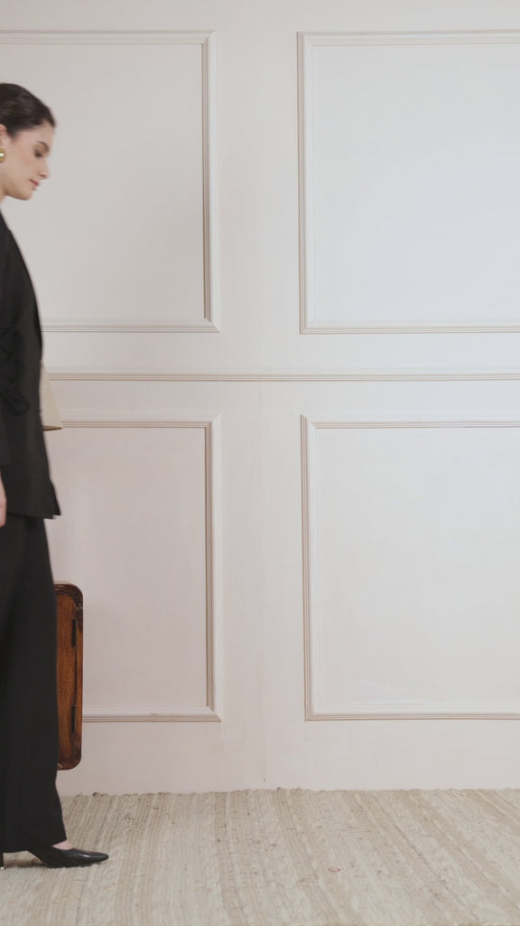 Elevate your formal and semi-formal wardrobe with this chic black coat featuring a modern twist. Crafted from premium fabric, this coat offers a structured silhouette with a flattering fit. The standout design element is the lace-up detailing on both sides, adding a contemporary edge to a classic piece, also featuring waist adjustment. It comes with a notched lapel collar, long sleeves, and a two-button front closure for a polished look. Perfect for office wear, evening outings, or layering over tailored trousers.
